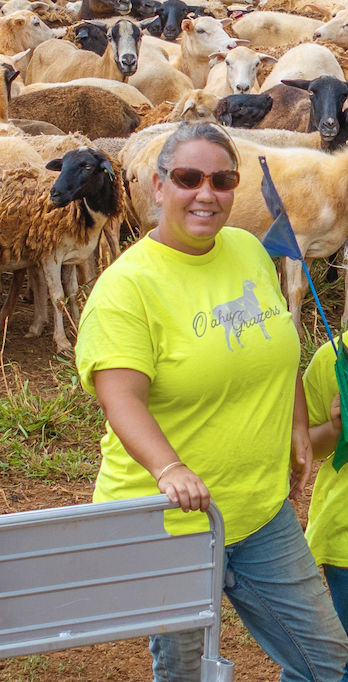 Raia Olsan is a mother of 4 who owns and operates O’ahu Grazers, LLC, along with her husband, Daniel Olsen. She raises large flocks of hair sheep scattered across the island of O’ahu. She uses her sheep to manage the vegetation on multiple solar sites and has begun brush management by grazing with sheep and goats in fire-prone communities.